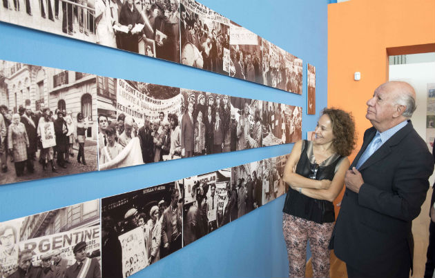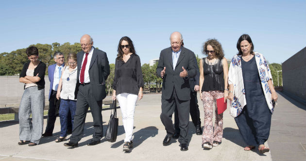 Mercedes Urquiza, coordinadora Relaciones Institucionales del Parque de la Memoria; Héctor Garrido Vidal, Sec. Prensa; Yeanette Soto, Agregada Laboral; Embajador Viera Gallo; Pamela Malewicz, Subsecretaria de DDHH del Gobierno de la Ciudad de Buenos Aires; ex Presidente Ricardo Lagos; Florencia Battiti, Curadora del Parque de la Memoria; María José Fontecilla, agregada cultural.