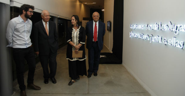 Artista Enrique Ramírez, ex Presidente Ricardo Lagos, Agregada Cultural María José Fontecilla y Embajador Viera Gallo.