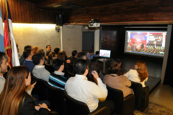 En el auditorio del Centro Cultural Matta y mediante un enlace vía streaming, chilenos y chilenas residentes en Madrid, autoridades de Gobierno en Santiago, la Embajada de Chile en Argentina, miembros de la comunidad chilena en la capital argentina, el personal del Consulado General en Buenos Aires y de la Oficina Comercial, participaron de este hito histórico, con motivo de la promulgación de la ley que permite el voto de los chilenos en el exterior.