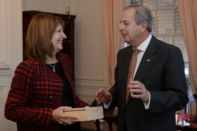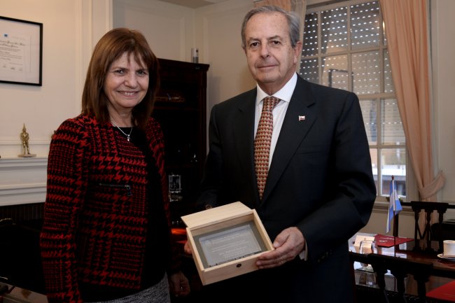 Saludo del Embajador Sergio Urrejola a la Ministra de Seguridad Comparte Síguenos A+ A- El Embajador Sergio Urrejola realizó un saludo de cortesía esta mañana a la Ministra de Seguridad de la Nación Dra. Patricia Bullrich.