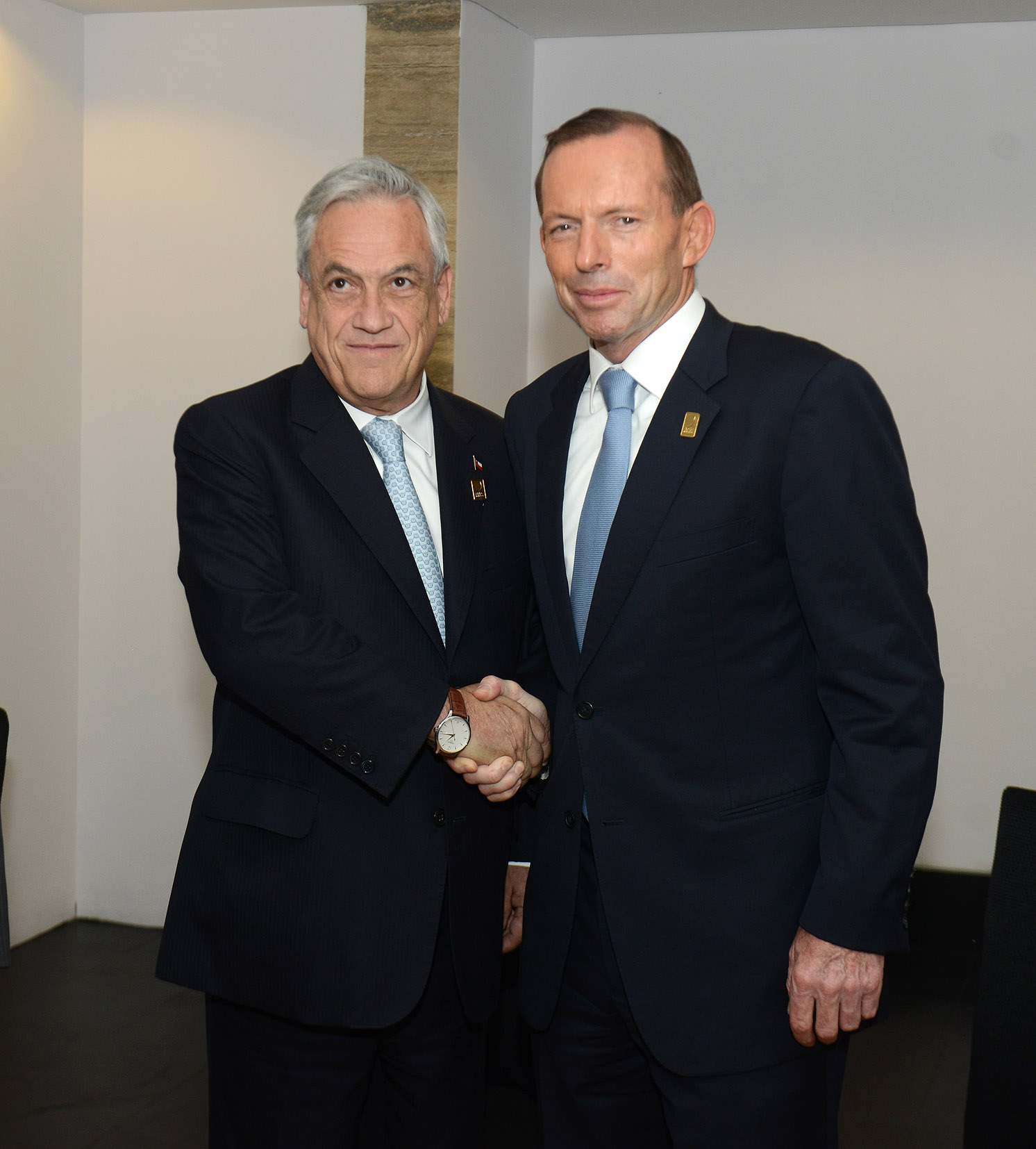 En el marco de la XXI Cumbre de Líderes de APEC, el Presidente de la República, Sebastián Piñera, sostuvo un encuentro de trabajo con el Primer Ministro de Australia, Anthony Abbot en Bali, Indonesia.