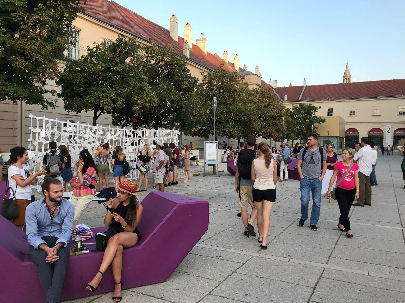 La instalación se ejecutó en el prestigioso centro cultural "MuseumsQuartier" de Viena (www.mqw.at/en/), que alberga a importantes museos y salas de arte de la ciudad, en sus más de 90 mil metros cuadrados, y que recibe 5,6 millones de visitantes al año.