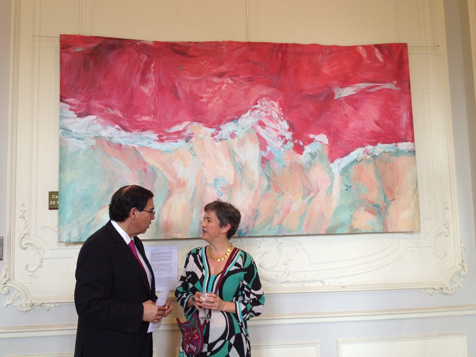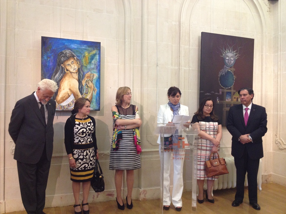 Paulina Antuna, directora de la Galería Artemis y María Ángeles González, directora del Instituto Cervantes dieron paso a esta muestra itinerante que ha sido recientemente expuesta en la sede de la ONU en Ginebra, junto al Embajador Appelgren y sus colegas de los países mencionados.