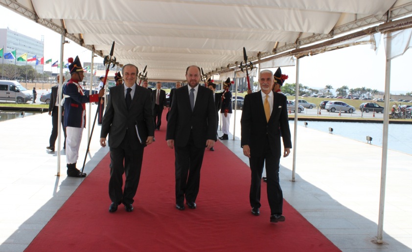 En el marco de su visita a Brasil y tras participar ayer en la reunión anual del Consejo Asesor Internacional de la Fundación Dom Cabral, el Ministro de Relaciones Exteriores, Alfredo Moreno, sostuvo hoy un encuentro con el Canciller de ese país, Celso Amorim, en el Palacio de Itamaraty en Brasilia.