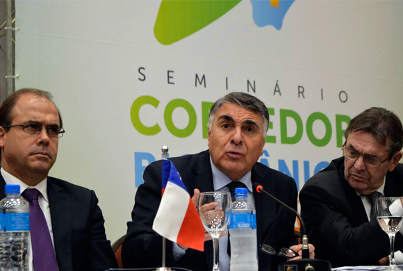El Subsecretario de Relaciones Exteriores, Edgardo Riveros, expuso hoy en un seminario sobre los corredores bioceánicos que conectarán a Chile, Brasil, Argentina y Paraguay. La actividad se realizó en la ciudad brasileña de Campo Grande y participaron en ella autoridades de los cuatro países.