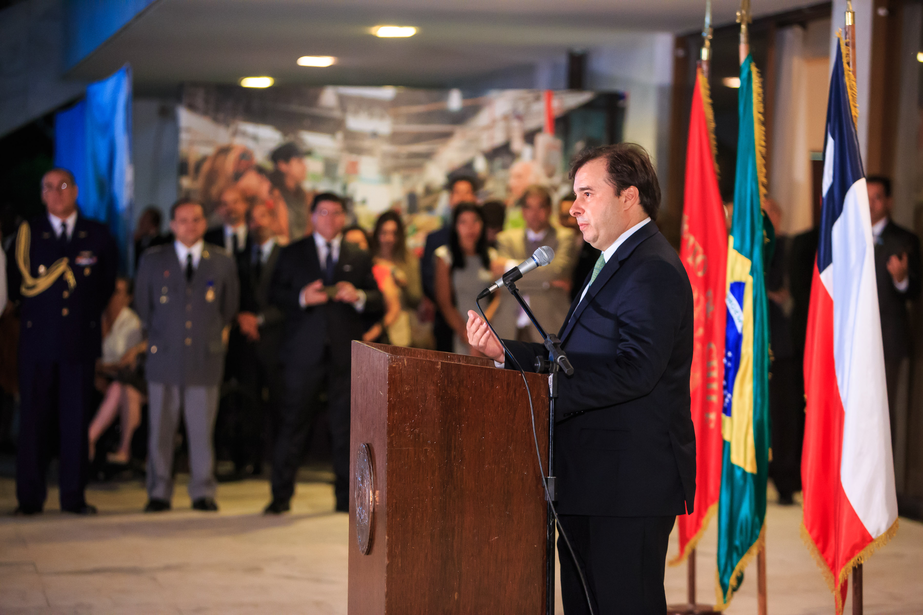 En la oportunidad, Rodrigo Maia, Presidente de la República en Ejercicio, puso de relieve los especiales lazos que lo unen con Chile y envió un afectuoso saludo al pueblo chileno. Por su parte, el Embajador Galvão, accediendo a una invitación de la Embajada efectuó un discurso en el que destacó la cooperación existente entre ambos países en distintas áreas y entregó un especial saludo al Embajador y al gobierno de Chile de parte del Canciller José Serra, quien se encuentra en Nueva York participando en la Asamblea General de la ONU junto al presidente Michel Temer.