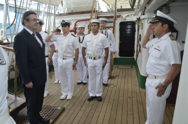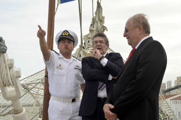 El Embajador Jaime Gazmuri, junto al Agregado Naval y de Defensa CN Alberto Osorio, recibió al Buque Escuela Esmeralda en el puerto nordestino de Recife, el 14 de octubre recién pasado, en el marco de su LX Crucero de Instrucción por los océanos Pacífico y Atlántico.