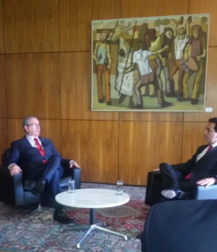 El Presidente de la Cámara de Diputados de Chile, Marco Antonio Núñez, efectuó una visita protocolar de trabajo a su par brasileño, Eduardo Cunha, en la sede del Parlamento en Brasilia el 25 de agosto del presente año (ver foto anexa).