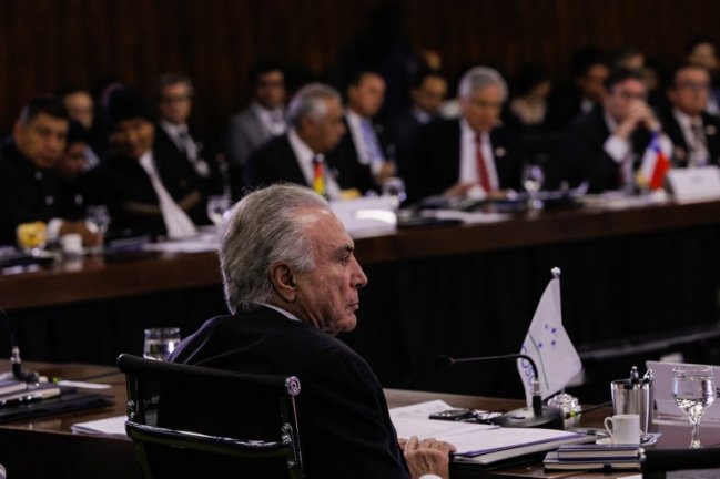 El Presidente de Brasil, Michel Temer, en su rol de Presidente Pro Tempore, inició la reunión multilateral refiriéndose a la importancia de la apertura comercial del bloque y, de manera especial, a la relación del MERCOSUR con la Alianza del Pacífico.