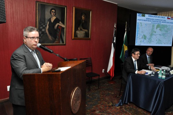 Con la asistencia el Subsecretario de Relaciones Exteriores de Chile, Edgardo Riveros; del Secretario General del Ministerio de RR.EE. de Brasil, Embajador Marcos Galvão, y representantes de Argentina y Paraguay, además de senadores, diputados, intendentes, gobernadores, vicegobernadores y alcaldes de estados, regiones y ciudades chilenas, brasileñas y paraguayas, asi como de delegaciones empresariales, el 22 de agosto se realizó en Brasilia el Seminario “Corredor Vial Porto Murtinho – Puertos del Norte de Chile”, organizado por la Embajada de Chile.