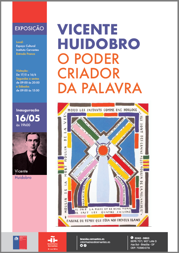 El jueves 16 de mayo de 2019, fue inaugurada en la Sala de Exposiciones del Instituto Cervantes de Brasilia una breve muestra en homenaje a los 71 años de la muerte del poeta chileno Vicente Huidobro (1893-1948). Mediante una selección de sus principales obras, ediciones, facsímiles, poemas, reproducciones de sus famosos caligramas y paneles explicativos de su vida y obra en idioma portugués, el visitante podrá introducirse en el mundo de este gran escritor de las vanguardias latinoamericanas y conocer distintos aspectos de su producción literaria.