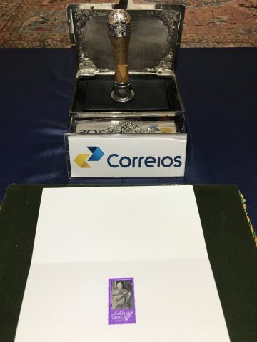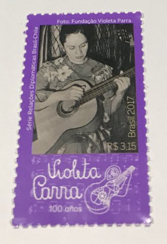 El pasado 21 de noviembre, en conjunto con autoridades de Corrieos do Brasil y en dependencias de la Embajada de Chile en Brasilia, ante unos 100 invitados de distintos ámbitos del quehacer cultural, diplomático y de gobierno de Brasil, se efectuó la ceremonia de emisión del sello postal conmemorativo del Centenario de Violeta Parra, el cual se enmarca no sólo dentro de las actividades desarrolladas por esta Embajada para conmemorar los 100 años de Violeta Parra, sino que también pasó a formar parte de la Serie “Relaciones Diplomáticas” que posee el Correo brasileño.