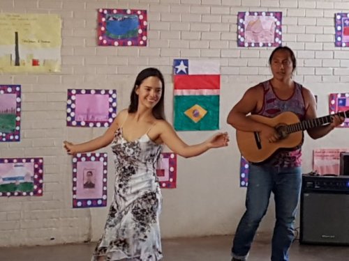 Como parte de su exposición, y con el acompañamiento de una guitarra tocada por Enrique Icka, ambos artistas interpretaron temas propios de la tradición rapanui, incorporando a los pequeños tanto al canto como a la danza de algunas de estas canciones y ritmos tradicionales de origen polinésico. Algunos niños y niñas, por su parte, leyeron trabajos inspirados en nuestro país.