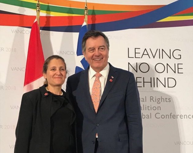 Entre el 5 y el 8 de agosto, una delegación chilena compuesta por el Ministro de RR.EE., Roberto Ampuero, el Embajador Alejandro Marisio y el representante de la Dirección de DD.HH. de Cancillería, sr. Jaime Godoy, participó en la Conferencia Global de la Coalición por la Igualdad de Derechos (Equal Rights Coalition, ERC) que sesionó en Vancouver del 5 al 8 de agosto.