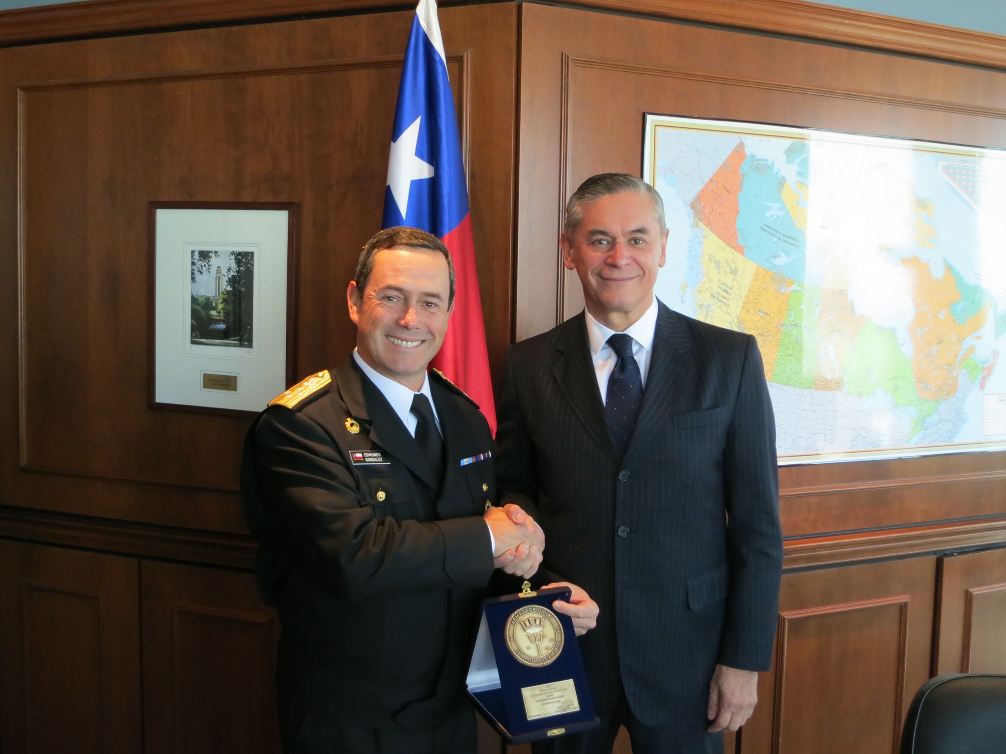 En el marco de las excelentes relaciones bilaterales entre la Armada de Chile y la de Canadá, el Sr. Comandante en Jefe de la Armada, Almirante Sr. Edmundo González Robles, acompañado del el Jefe de Estado Mayor General de la Armada, Vicealmirante Sr. Francisco García-Huidobro Campos, realizó una visita Oficial a Canadá entre los días 1 y 7 de abril, para reunirse con el Comandante de la Real Armada de Canadá, Vicealmirante Paul Maddison.