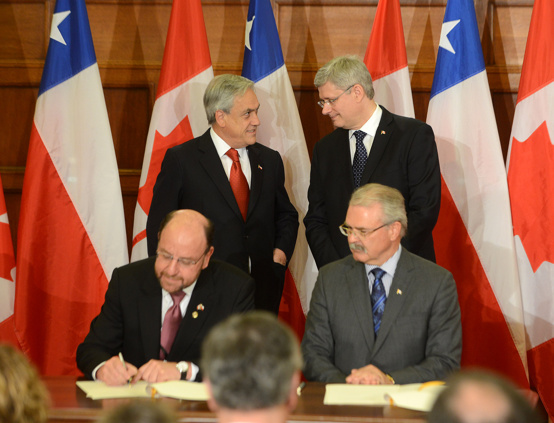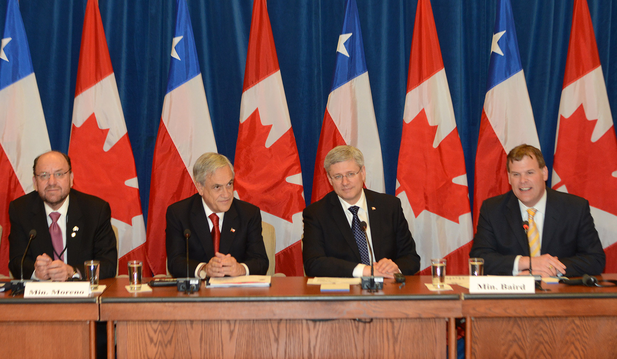 En el marco de la reunión del mandatario chileno con el Primer Ministro de Canadá, Stephen Harper, el Canciller Alfredo Moreno y el Ministro de Agricultura de ese país, Gerry Ritz, firmaron acuerdos de cooperación en diversas materias.