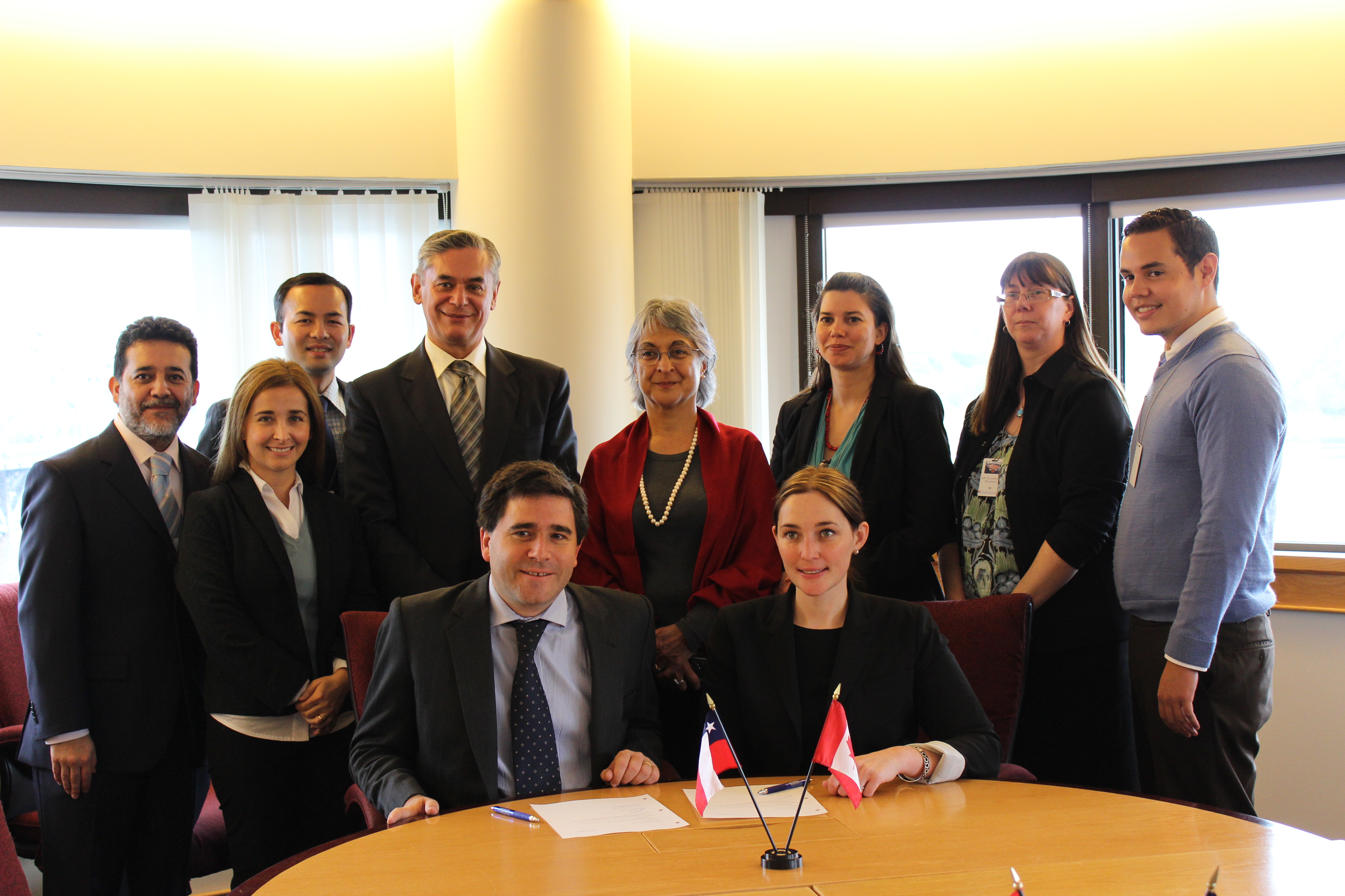 En la instancia, las autoridades de Chile y Canadá, Ricardo Irarrázabal y Mollie Johnson, acompañados del embajador de Chile en Canadá, Roberto Ibarra, firmaron un documento de aceptación del informe de trabajo conjunto del año 2011 y comprometieron a los países respectivos en el desarrollo de los nueve proyectos para este año.