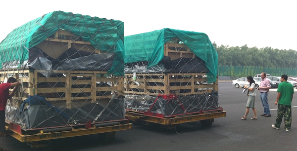 El primer embarque de alpacas chilenas fue recibido en el aeropuerto internacional de Beijing por una delegación de la Embajada de Chile en China, encabezada por el Agregado Agrícola Alvaro Aspee.