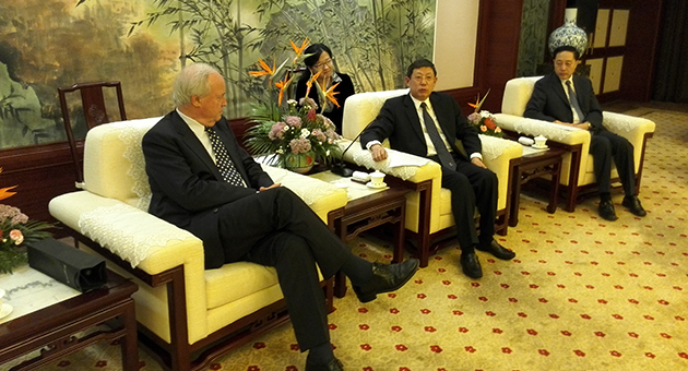 El Embajador de Chile en China Sr. Jorge Heine se encuentra realizando una visita a Shanghai, ciudad en la cual participará en la actividad Sabores de Chile. En ese contexto, hoy sostuvo algunas reuniones y entre ellas destacó la sostenida con el alcalde de Shanghai, Sr Han Zheng, gran impulsor de la Zona Franca de esa ciudad.