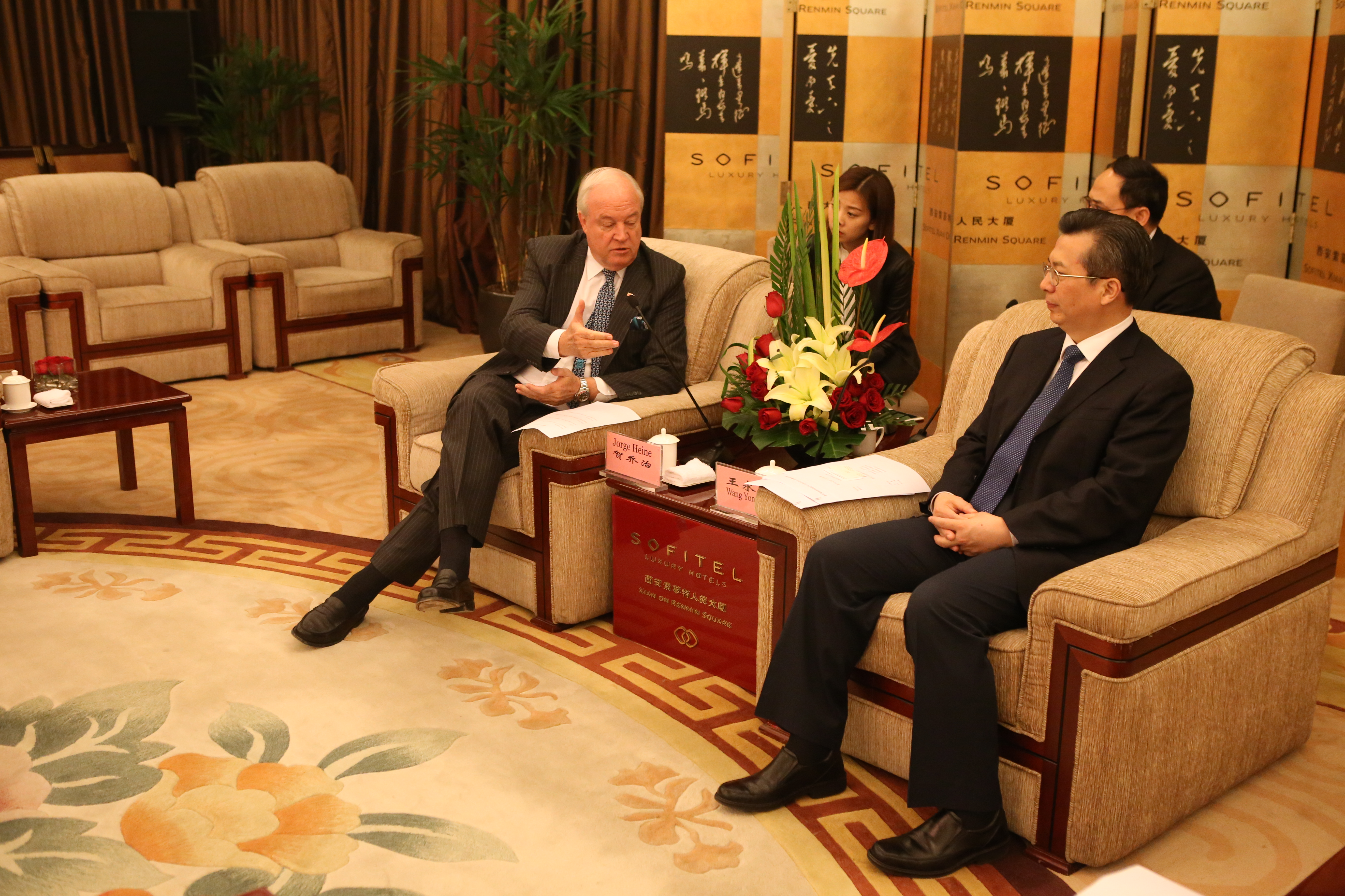 Durante esta visita oficial, que se extendió del 28 al 30 de marzo, el Jefe de Misión se reunió con la autoridad máxima de la ciudad, Wang Yongkang, secretario del Partido Comunista de China del Comité Municipal, teniendo un animado intercambio acerca de cómo fomentar la cooperación entre Chile y Xian.