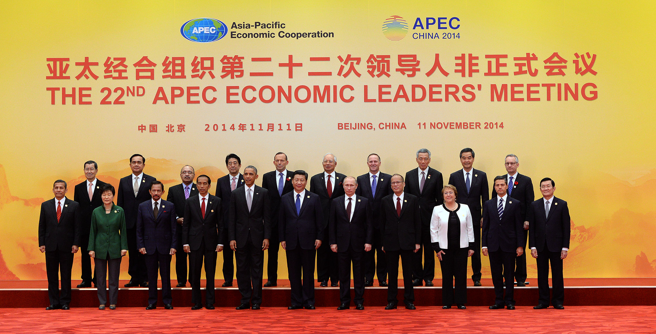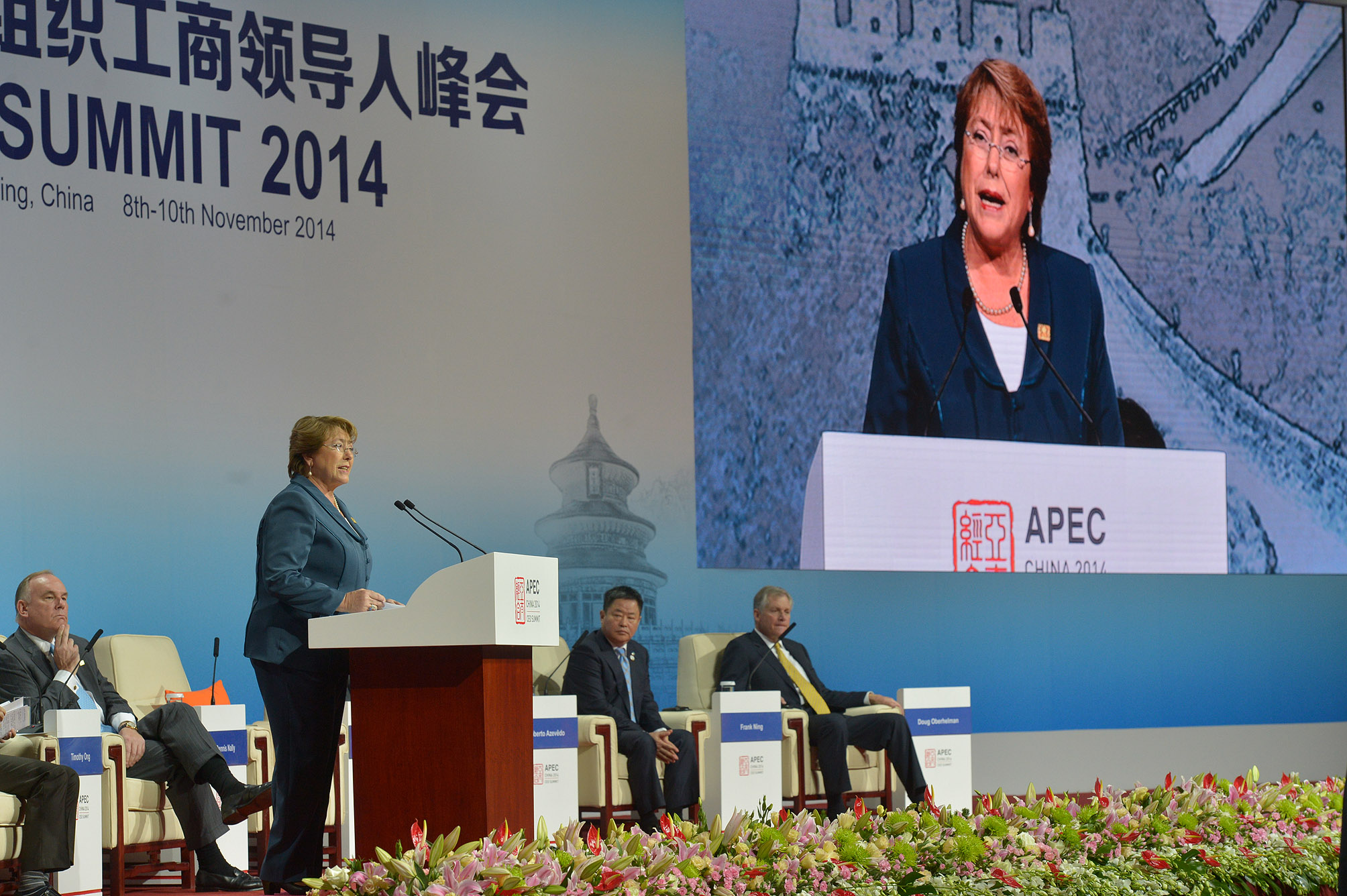 S.E. la Presidenta de la República participó en diversas actividades de la Semana de Líderes de Apec, que se realizaron en Beijing, China, entre el 5 y 11 de noviembre pasado. Entre ellas destacaron su presentación como key note speaker en el CEO Summit (9/nov.), la reunión de los Líderes con ABAC (Consejo Empresarial del Asia Pacífico, 10/nov.), la ceremonia de recepción los Líderes de Apec en el Cubo de Agua (10/nov.) y la reunión Informal de Líderes en el Lago Yanqi (11/nov). Además, sostuvo encuentros bilaterales con otros líderes de la región que son miembros de APEC.