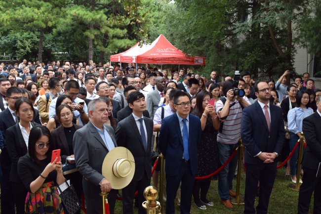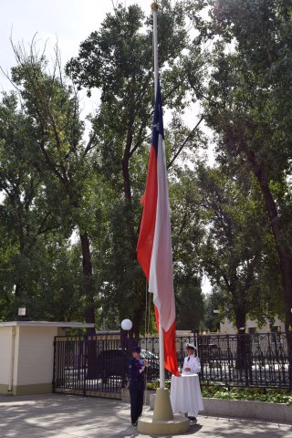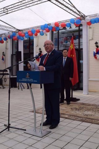 El día 18 de septiembre se celebró en dependencias de esta Embajada, la actividad de conmemoración de un nuevo Día Nacional de nuestro país. En esta ocasión, el Gobierno chino estuvo representado por el Viceministro Qin Gang, encargado de los asuntos de Latinoamérica y Caribe de la Cancillería china. Asistieron al evento otras autoridades del Ministerio de Relaciones Exteriores local, el H. Diputado Issa Kort, representantes del cuerpo diplomático, empresarios, académicos, periodistas, miembros de la comunidad de chilenos, y amigos de esta Misión. Los asistentes sumaron más de quinientas personas.