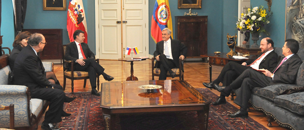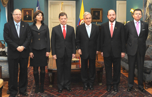Ministro de RR.EE. de Chile recibe a Presidente Santos