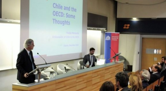 Esta conferencia se desarrolló en el marco de la visita a la capital croata -desde París- del Representante Permanente de Chile ante la Organización para la Cooperación y el Desarrollo Económicos (OCDE), Embajador Felipe Morandé, y parte del equipo de dicha Misión, para compartir la experiencia de Chile en la OCDE con las autoridades de Croacia, como país aspirante a formar parte de dicha organización.