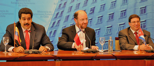 Cancilleres de Venezuela Nicolás Maduro, Chile Alfredo Moreno y Cuba Bruno Rodríguez