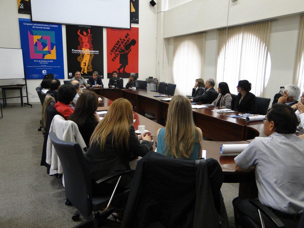 La fotografía corresponde a la reunión sostenida en la sede de FLACSO en Quito entre la comitiva del CRUCH y representantes de diversas universidades ecuatorianas. Este encuentro fue encabezado por el Embajador Juan Pablo Lira y el ex Canciller y profesor asociado de Flacso, Francisco Carrión.