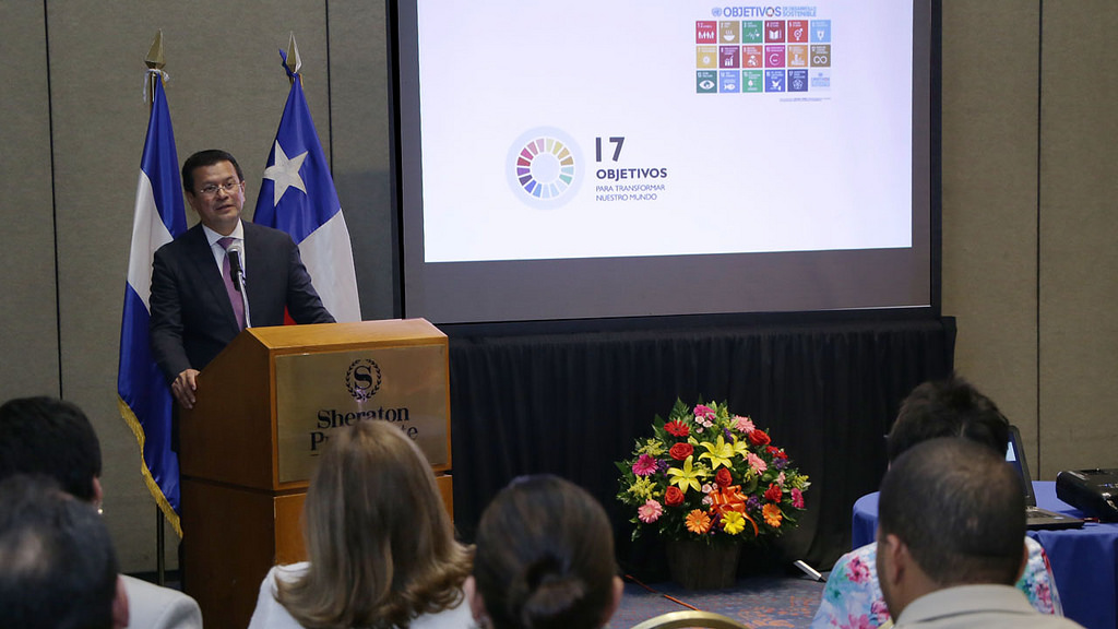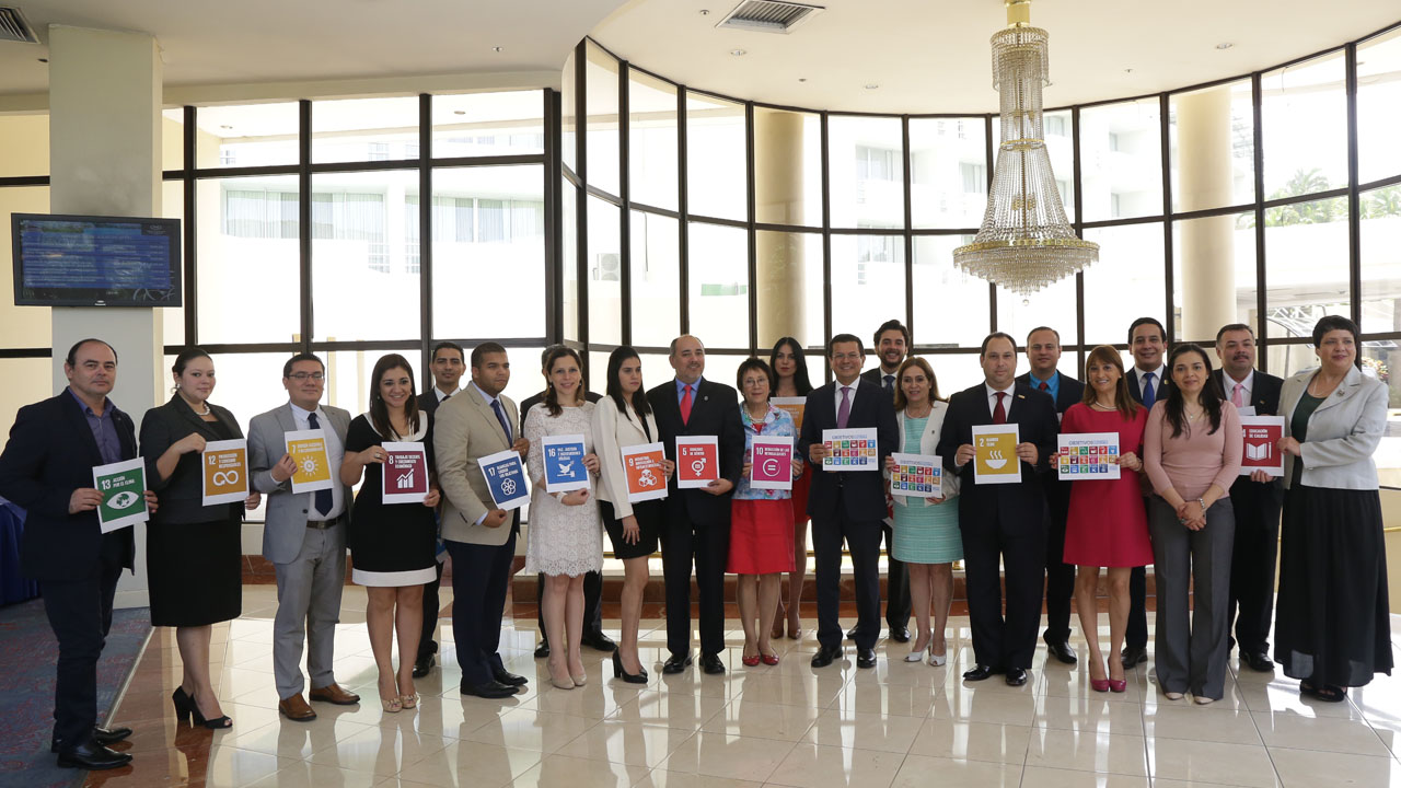 Como conferencistas invitados participaron: la Viceministra de Comercio e Industria, Merlin Alejandrina Barrera, quien explicó la relación entre comercio y los ODS; el Representante Residente Auxiliar y Jefe Economista del PNUD El Salvador, Rafael Pleitez, quien habló sobre los ODS y sus implicaciones en el país; y el Director de Asuntos multilaterales de Cancillería de El Salvador, Nelson Amaya Larromana, quien expuso sobre la implementación de la Agenda 2030 en el país, los avances obtenidos hasta el momento en una de las naciones que ha sido elegida para la implementación acelerada de los ODS.