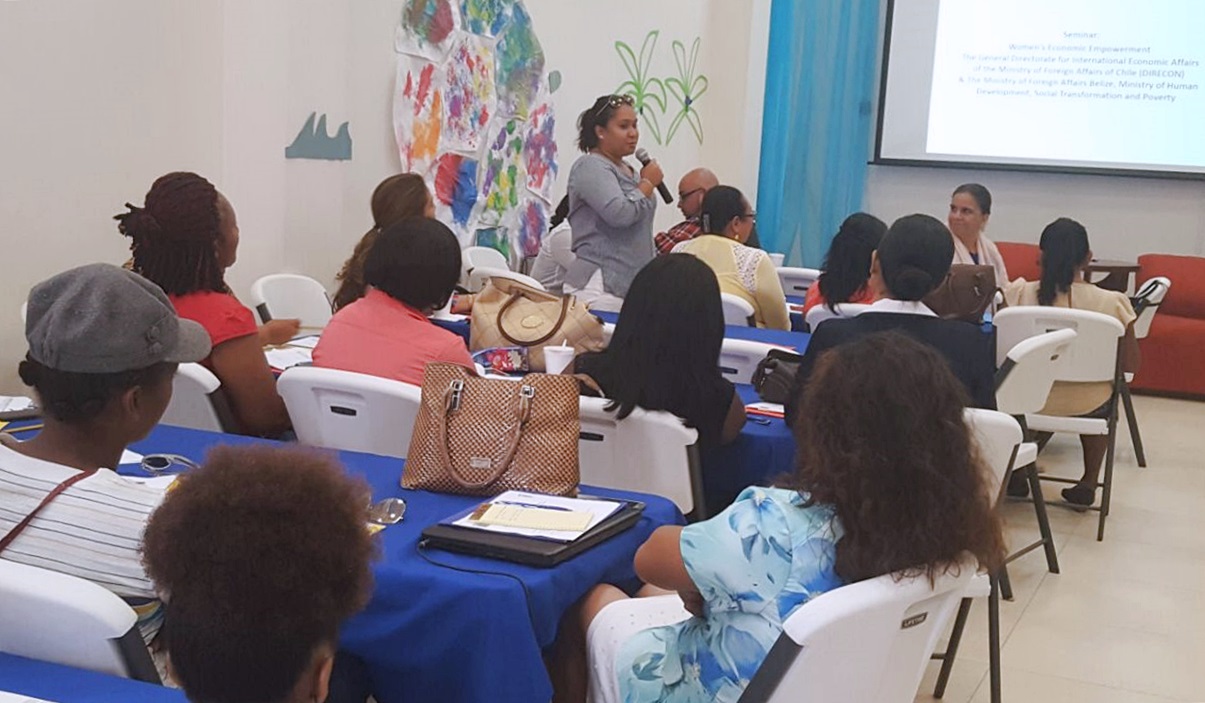 El 17 de julio se inauguró en Ciudad Belice el Seminario "Empoderamiento económico de la mujer" con la participación de Tracy Panton, Ministra de Comercio y Desarrollo Económico; la Embajadora de Chile Concurrente en Belice, María Inés Ruz; Karen Bernard, Representante Adjunta del PNUD, Carla Henríquez, Directora de Centro América y el Caribe de la DIRECON.