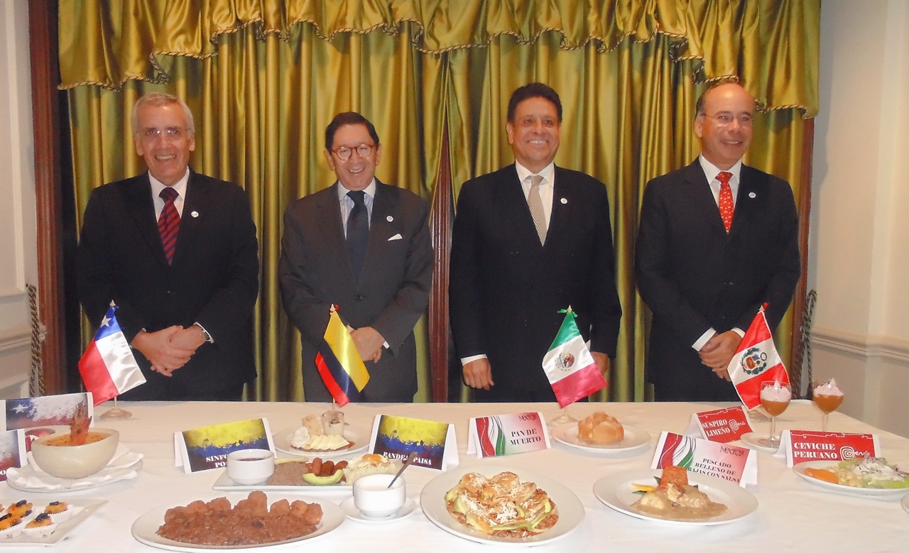 El lanzamiento de este festival gastronómico estuvo a cargo de los excelentísimos embajadores de los países de la Alianza: Don Renato Sepúlveda Nebel (Chile), Don Raúl López Lira (México), Don Julio Aníbal Riañio (Colombia) y Don Eric Anderson (Perú), quienes describieron algunas características de cada platillo. Esta muestra es parte de lo cultural, lo vernáculo de cada país en materia gastronómica, comentó el embajador Riañio.