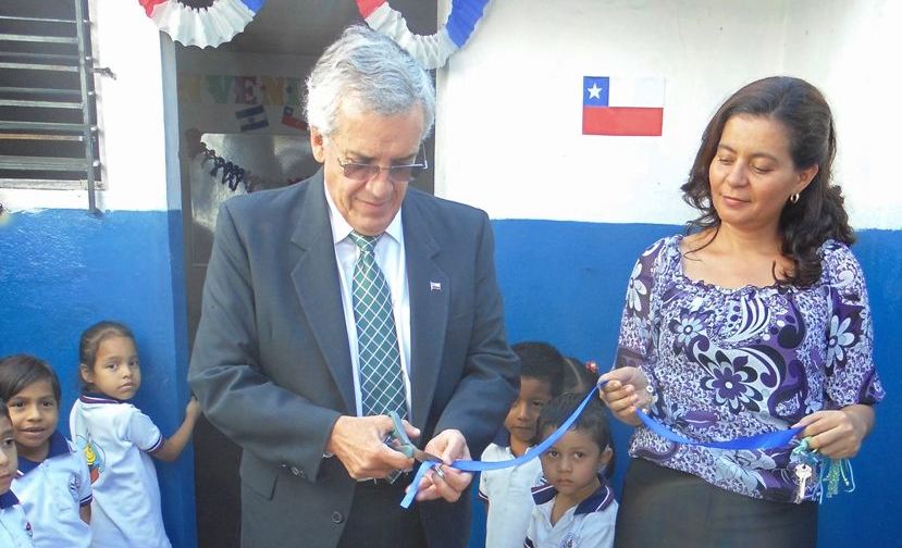 El corte de cinta inaugural estuvo a cargo del embajador de Chile en El Salvador, Sr. Renato Sepúlveda Nebel y la directora de la escuela Sra. Claudia Romero, quien en nombre de sus pequeños alumnos se mostró agradecida por el donativo que servirá para introducir a los estudiantes al mundo de la tecnología desde temprana edad.