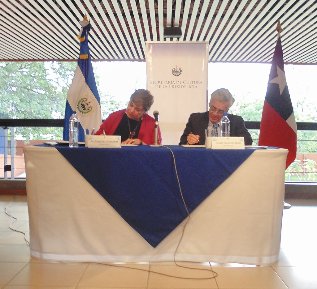 El acta que sella el donativo fue firmada por el Excmo. Embajador de Chile en El Salvador Señor Renato Sepúlveda Nebel y la Secretaria de Cultura de la Presidencia de la República de El Salvador, Señora Magdalena Granadino, como una muestra más de los estrechos lazos de amistad y cooperación en el área cultural que unen ambas naciones.