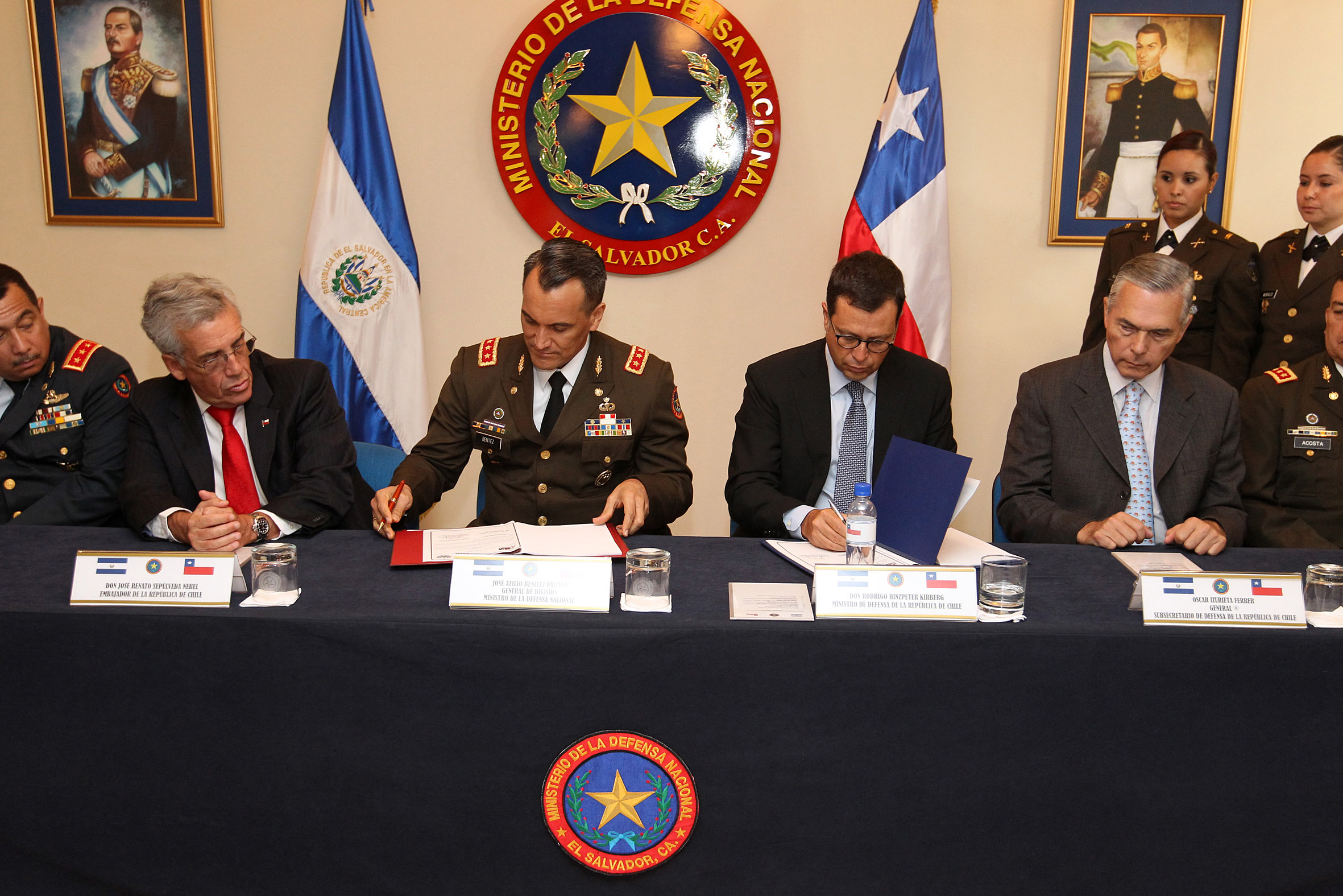 Para reafirmar los lazos de cooperación entre las fuerzas armadas de Chile y El Salvador, los ministros de defensa de ambas naciones suscribieron este día en San Salvador dos acuerdos importantes en materia de fortalecimiento militar.