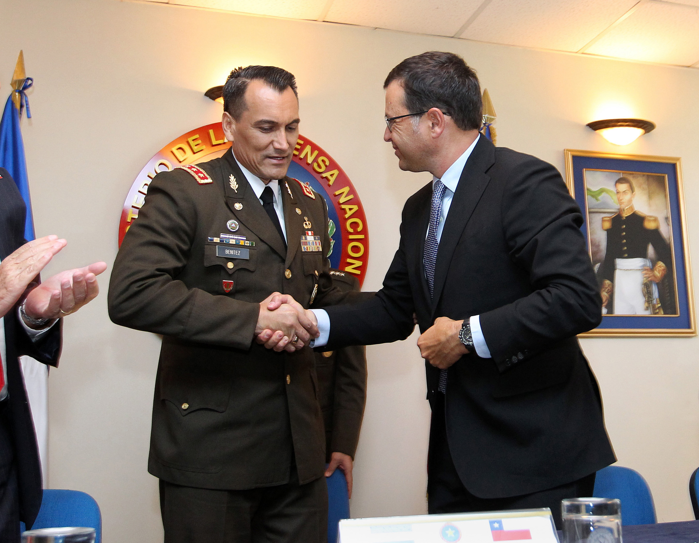 El Gral. Benítez agradeció por la cooperación formativa que han recibido de parte del Gobierno de Chile: La Fuerza Armada de El Salvador siempre ha contado con el soporte técnico, científico y educativo de la Fuerza Armada de Chile a través de sus diferentes ramas o instituciones que les han colaborado mucho en la especialización de varios de nuestros oficiales y en la actualización de nuestra institución.