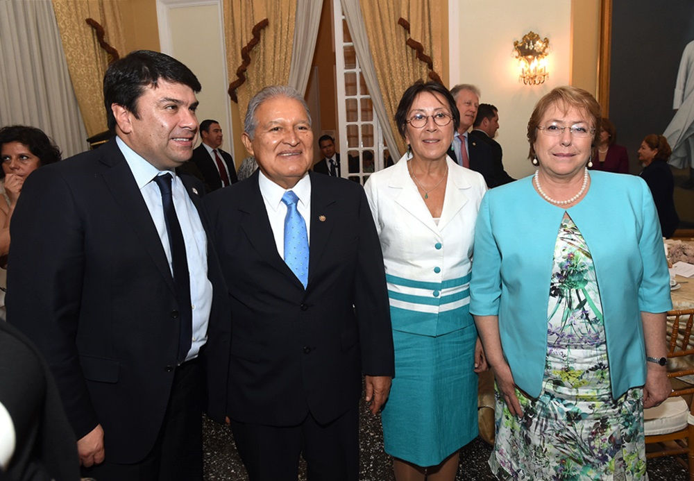 La presidenta Michelle Bachelet realizó una visita oficial a El Salvador los días 11 y 12 de agosto, con el objetivo de fortalecer el diálogo político entre los gobiernos y dar un nuevo impulso a la agenda bilateral y regional, especialmente a los esfuerzos que ambos países desarrollan en materia de Cooperación Sur Sur y de Cooperación Triangular.