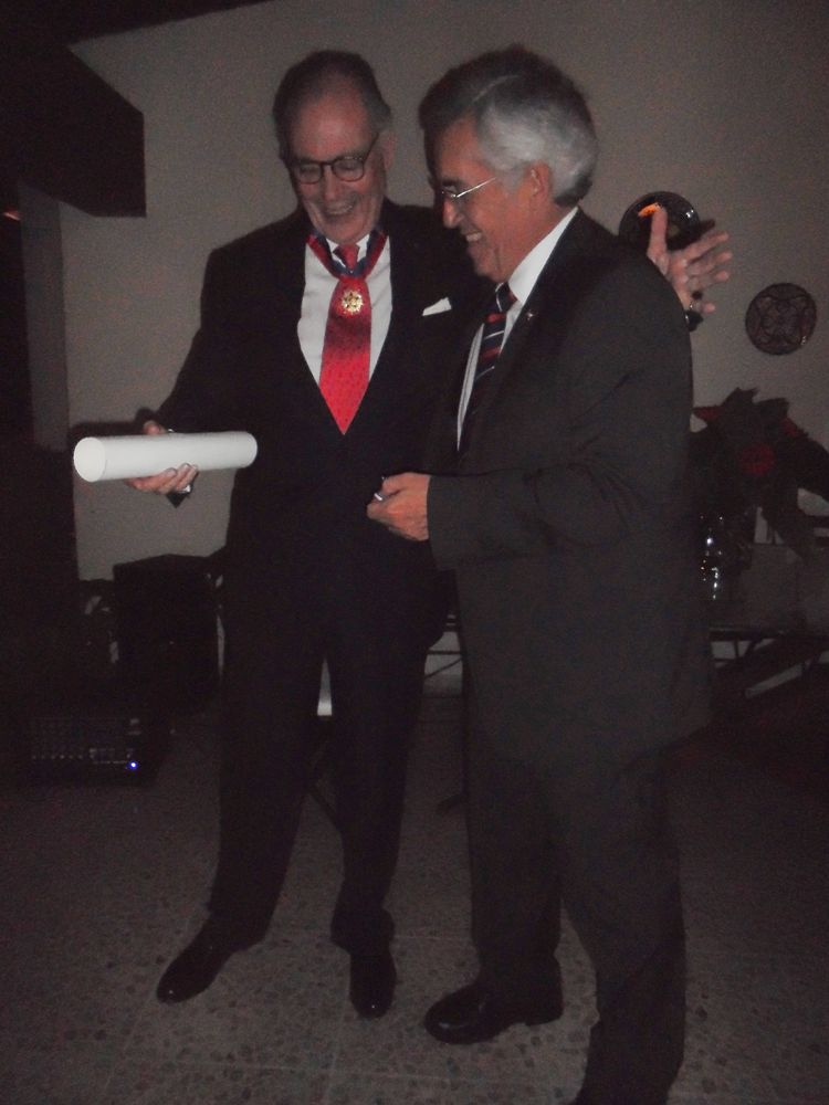 Por su parte el homenajeado expresó en sus palabras de agradecimiento: Es un gran honor para mi debido a que soy gran admirador de Chile y su gente. En mi vida profesional he aprendido mucho en Chile, tanto profesionalmente como en mi vida ciudadana, lo he aplicado con éxito aquí, es digno de tomar nota que estoy muy contento con esto.