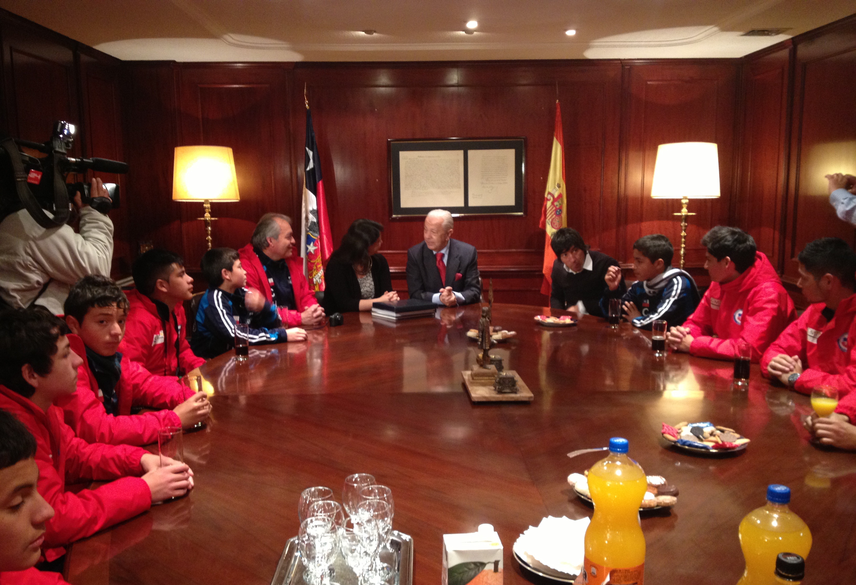 Los jóvenes de Quita Normal concurrieron hasta la Embajada de Chile en España acompañados de sus entrenadores y del destacado jugador Iván Zamorano quien impulsa, desde hace más de una décadas, esta iniciativa de gran impacto social que cuenta con el apoyo de las empresa del grupo Enersis, particularmente de Chilectra S.A.