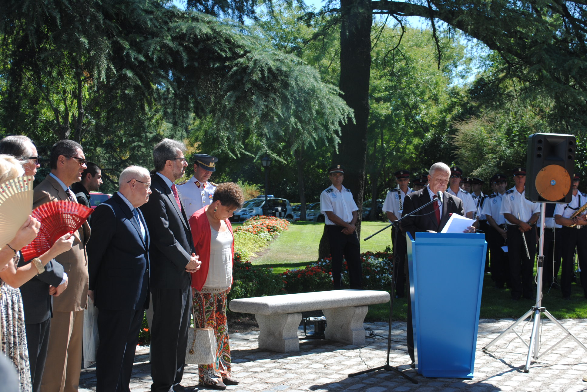 Ante el monumento ecuestre al héroe patrio Bernardo OHiggins Riquelme, en la Plaza Chile de Madrid, se efectuó el homenaje con motivo del 203º Aniversario de nuestra Independencia, con la concurrencia de autoridades españolas, embajadores acreditados en España y representantes militares de las distintas misiones diplomáticas.