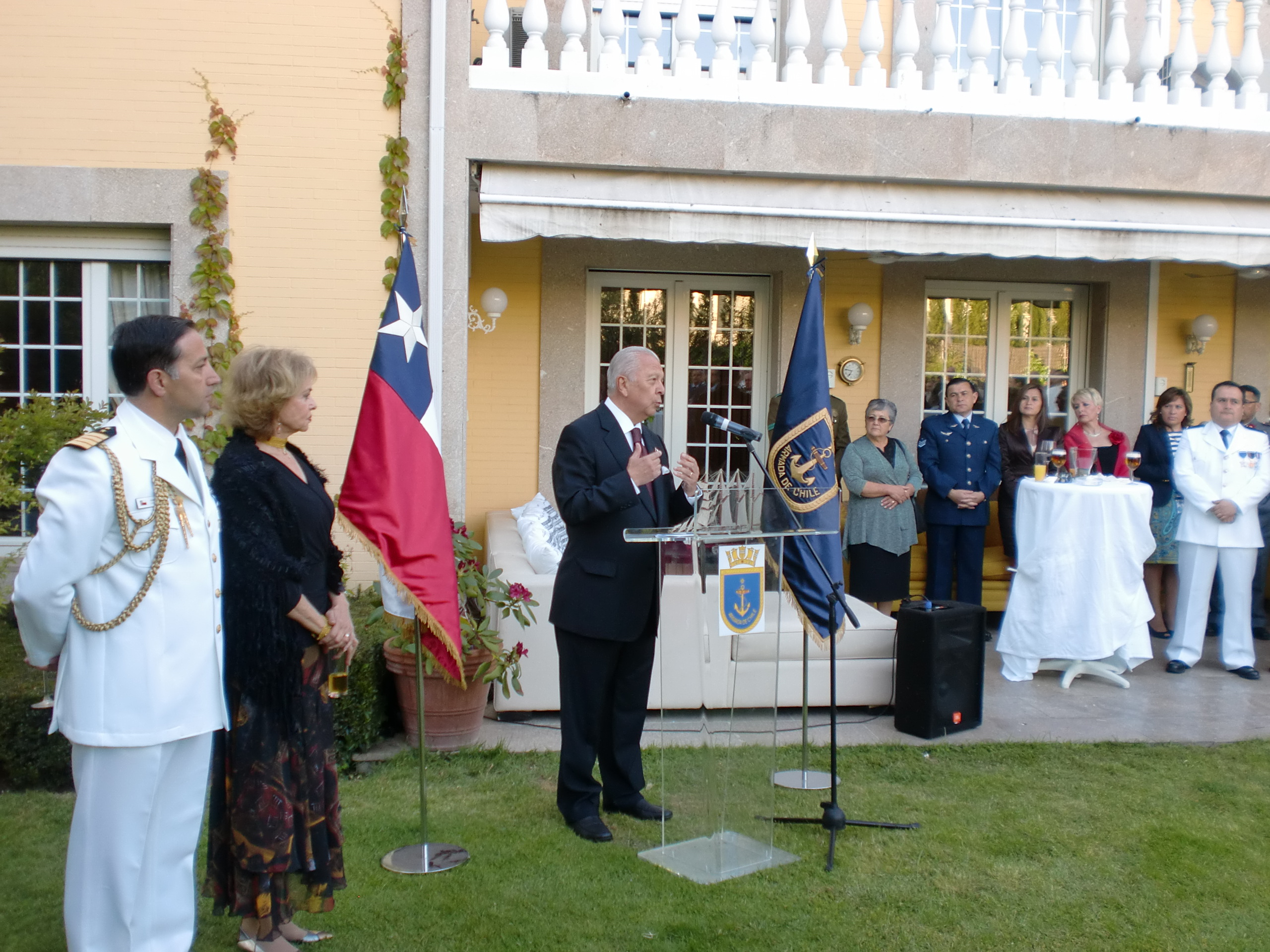 El Embajador Romero destacó la trascendencia de la fecha que se conmemora en todos los rincones de Chile y puso énfasis en el papel relevante de la Armada de Chile que, junto con las otras instituciones de la Defensa Nacional, han contribuido desde el inicio de la República a la construcción del carácter chileno. Además, recordó los avances que ha ido experimentado la más pobre colonia de España en América la que hoy ha llegado a tener el ingreso per cápita más alto de la región y se refirió al expreso deseo que tiene Chile de incorporarse al mundo y participar, junto con todas las naciones, en el desarrollo de una mejor calidad de vida para los hombres. Mencionó como ejemplo el papel de Chile en la integración regional destacando, específicamente, a la Alianza del Pacífico en cuyo nacimiento se contó con la presencia del Rey de España, primer país observador de esta Alianza y ahora continuará con la participación del presidente Rajoy en el traspaso de la Secretaría Protémpore en Bogotá.