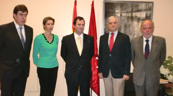 Subsecretario Cruzat; Director de la Cámara de Comercio de Madrid, Miguel Garrido; Manuel Valencia de Prochile y Tomás Pablo de CORFO-España |