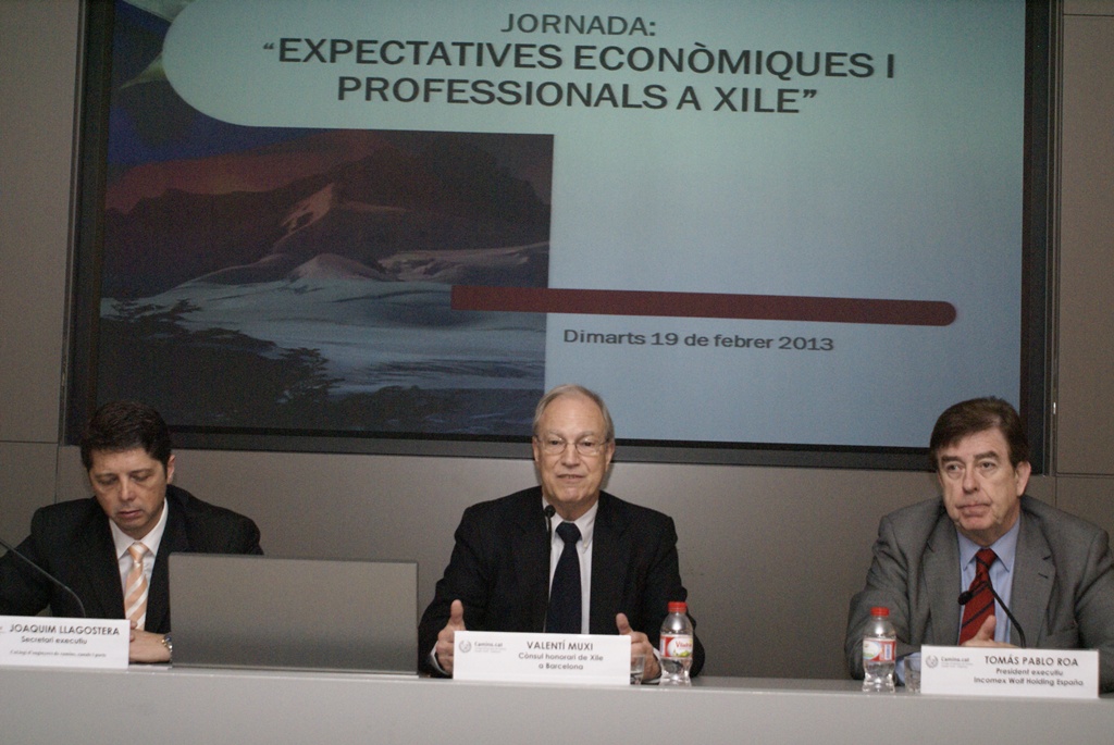 A continuación, Valentín Muxi, Cónsul Honorario de Chile en Barcelona, dio a conocer la labor del Consulado General en la que explicó la obtención de visa sujeta a contrato de trabajo para extranjeros y el de obtención de visa temporaria, detallando los documentos que se solicitaban y la disposición de parte de su organización para dar cumplimiento a las solicitudes recibidas. También hizo mención a los importantes acuerdo suscritos en Chile entre el Presidente del Gobierno Español, Mariano Rajoy y el Presidente de Chile, Sebastián Piñera, para estudiar y avanzar en diversos ámbitos.