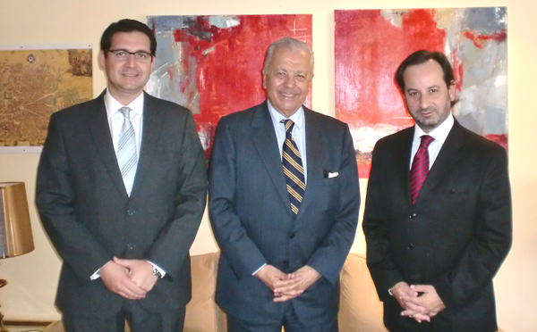 Los directivos Hernán Linetzky y Daniel Carmona, en reunión con el embajador de Chile Sergio Romero, señalaron que con la apertura de esta oficina, CorpBanca se convierte en el único banco chileno con oficina de representación registrada en el Banco de España.