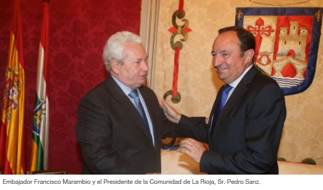 Entre los días 13 y 15 de agosto, el Embajador de Chile en España, Francisco Marambio, realizó una visita oficial a la ciudad de Logroño, sede del gobierno de la Comunidad Autónoma de La Rioja, en el marco del programa destinado a estrechar las relaciones políticas, económicas y culturales de las Comunidades Autónomas españolas con Chile