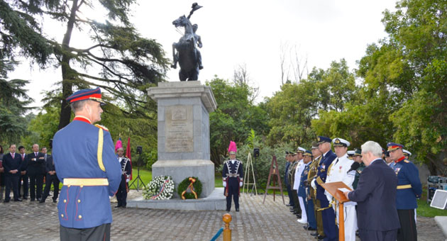 Embajador Francisco Marambio preside ceremonia de ofrenda floral ante monumento a Bernardo O'Higgins en Madrid