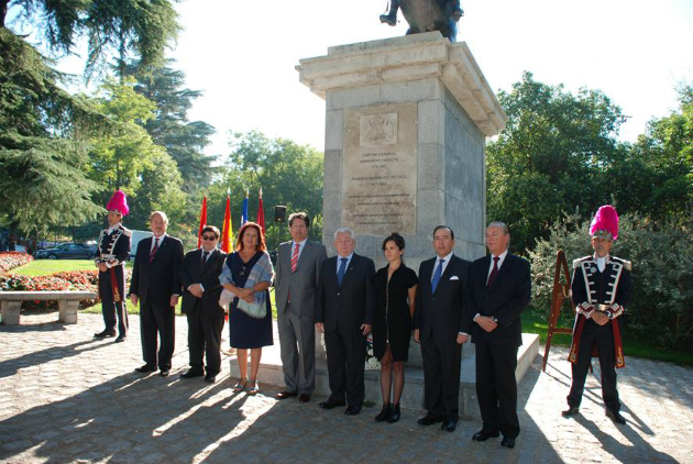 Embajador Francisco Marambio preside ceremonia de ofrenda floral ante monumento a Bernardo O"Higgins en Madrid