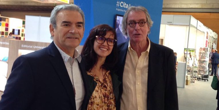 De Chile participaron 23 editores, entre ellos, Arturo Infante, de Catalonia, y Pablo Ditborn, expresidente de la Cámara Chilena del Libro, quienes aparecen en la foto con la Agregada Cultural a la Embajada de Chile, Sra. Daniella González.