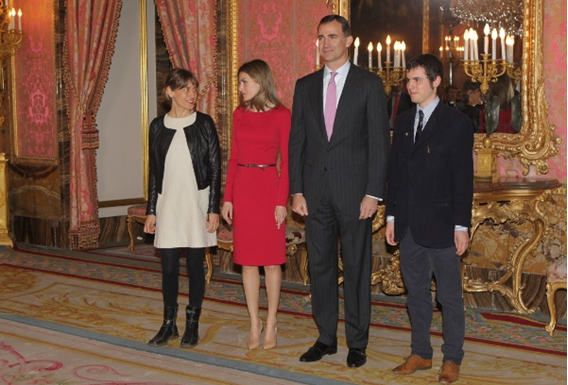 Fotos de Casa Real- Borja.: Príncipe Felipe de Asturias ofrece almuerzo en homenaje de Nicanor Parra acompañado de Colombina Parra y Cristóbal Ugarte Parra además del Ministro de Cultura Luciano Cruz Coke, la Presidenta de la Comunidad de Madrid, Esperanza Aguirre y el Embajador de Chile Sergio Romero. Foto de Casa Real: Colombina Parra, Los príncipes de Asturias, Leticia y Felipe y Cristóbal Ugarte Parra, nieto del nuevo Premio Cervantes Nicanor Parra.